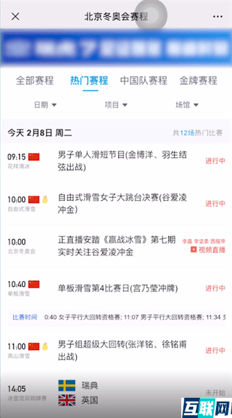 2022冬奥会赛程表