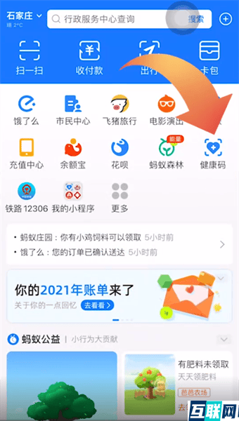 2. 想要代领健康码的话,首先打开支付宝app,点击首页的健康码功能,