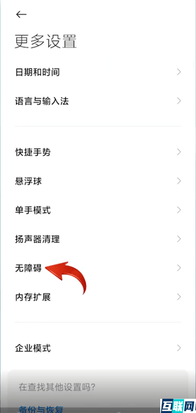 1. 1.在手机中点击设置按钮,随后在设置页面中点击更多设置,并选择无障碍选项。