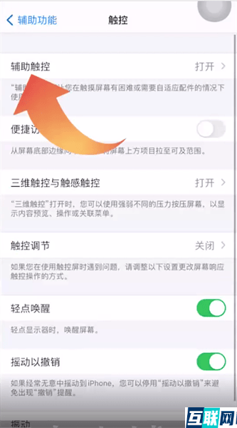 2. 2.然后在辅助功能页面点击触控选项,接下来再点击辅助触控选项,