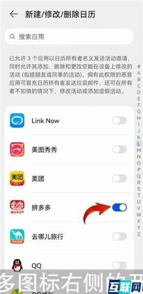 3. 再点击【新建/修改/删除日历】选项,下拉页面找到【拼多多】图标,最后将【拼多多】图标右侧的开关关闭即可。
