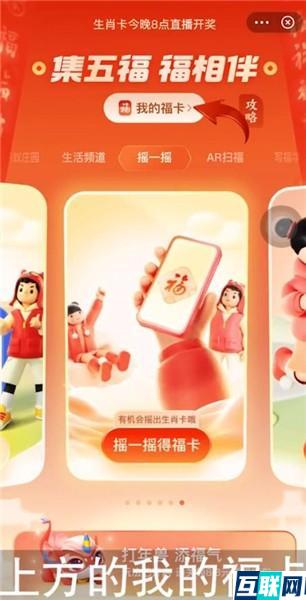 1. 首先打开【支付宝】客户端,然后点击首页面上方的五福活动栏,接着点击上方的【我的福卡】按钮,