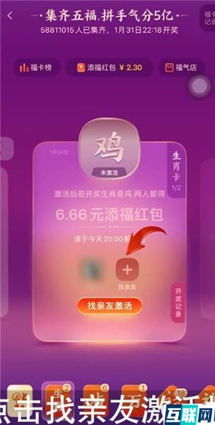 2. 点击下方的【生肖卡】图标,选择一个生肖后,再点击【找亲友激活】按钮,